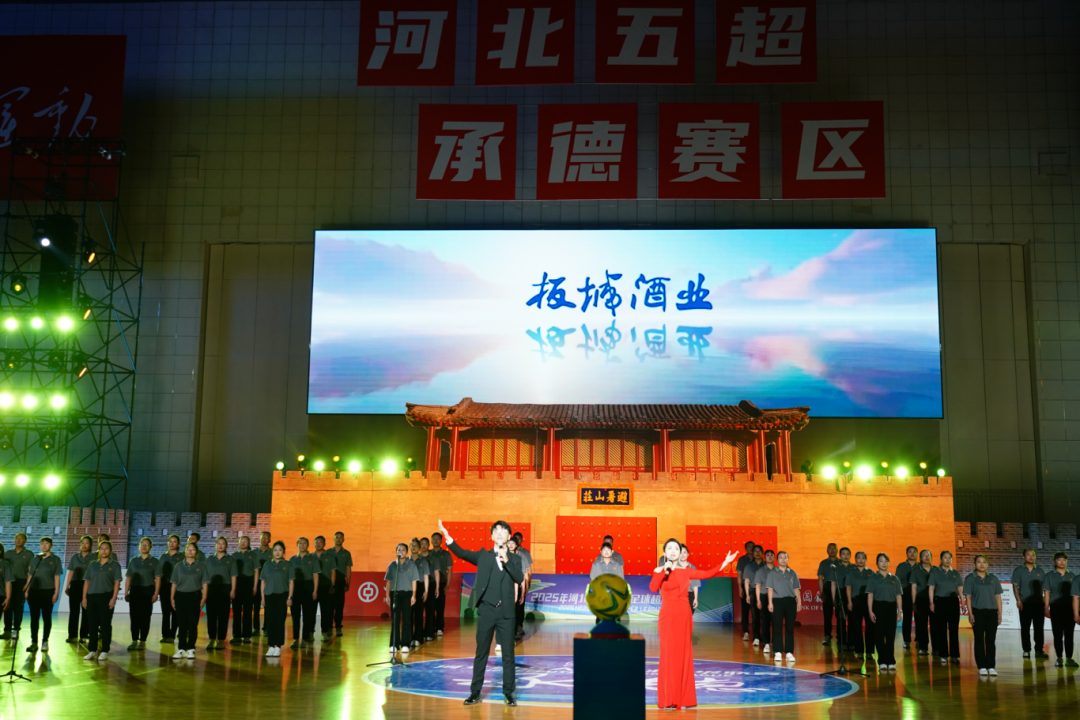 河北五超联赛承德赛区第四场在《天地一杯酒》的恢弘歌声中拉开帷幕。千亿国际酒业60名职工与承德籍歌手组成的合唱团,用饱含深情的演唱,唱响了燕赵大地的豪迈气概,也唱响了千亿国际人“以品质为基,以文化为魂”的坚守,展现了千亿国际酒业在时代浪潮中砥砺前行、永不止步的使命与担当!