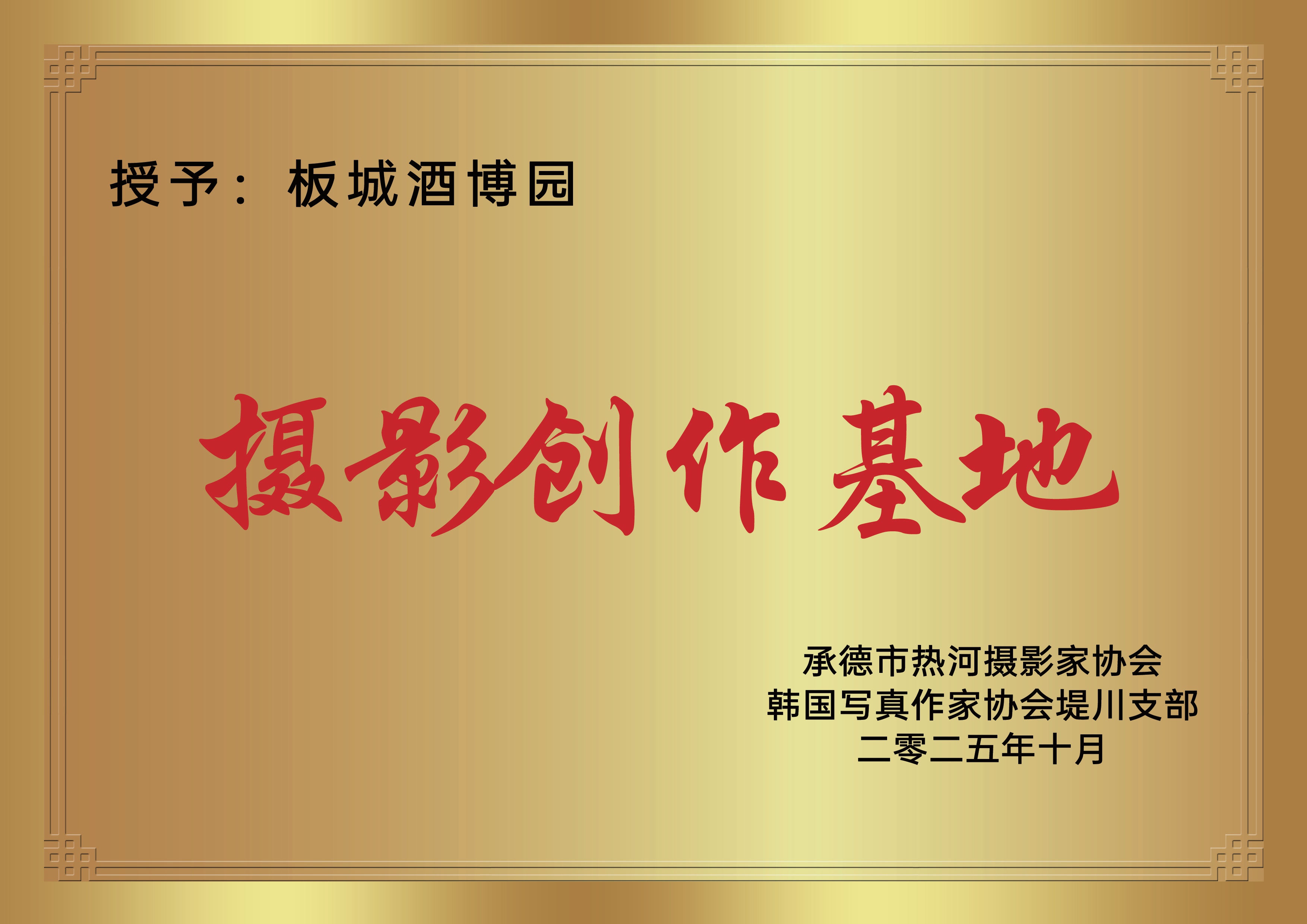 活动现场由河北省摄影家协会副主席、市文联名誉主席衣志坚,承德热河摄影家协会主席杨利民与韩国写真协会堤川支部长金序润共同授予千亿国际酒业“千亿国际酒博园摄影创作基地”的殊荣。